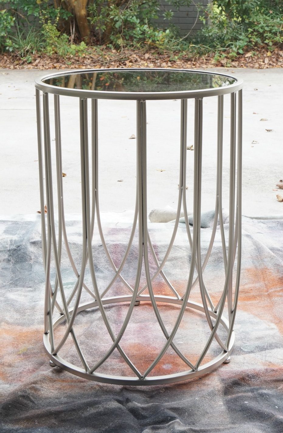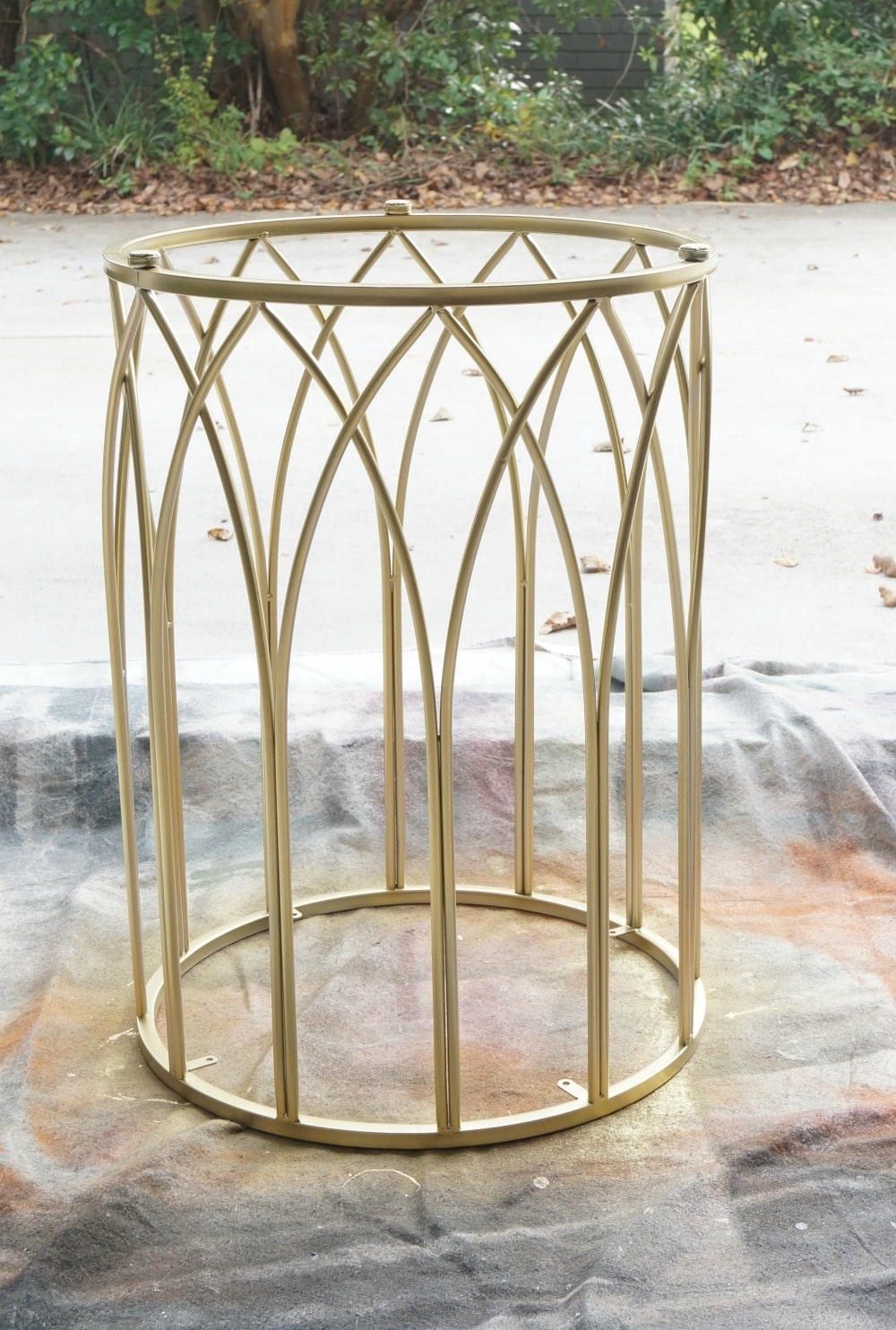 For the end of the sofa I found a little round wire frame side table at Homegoods that I gave a coat of gold paint
