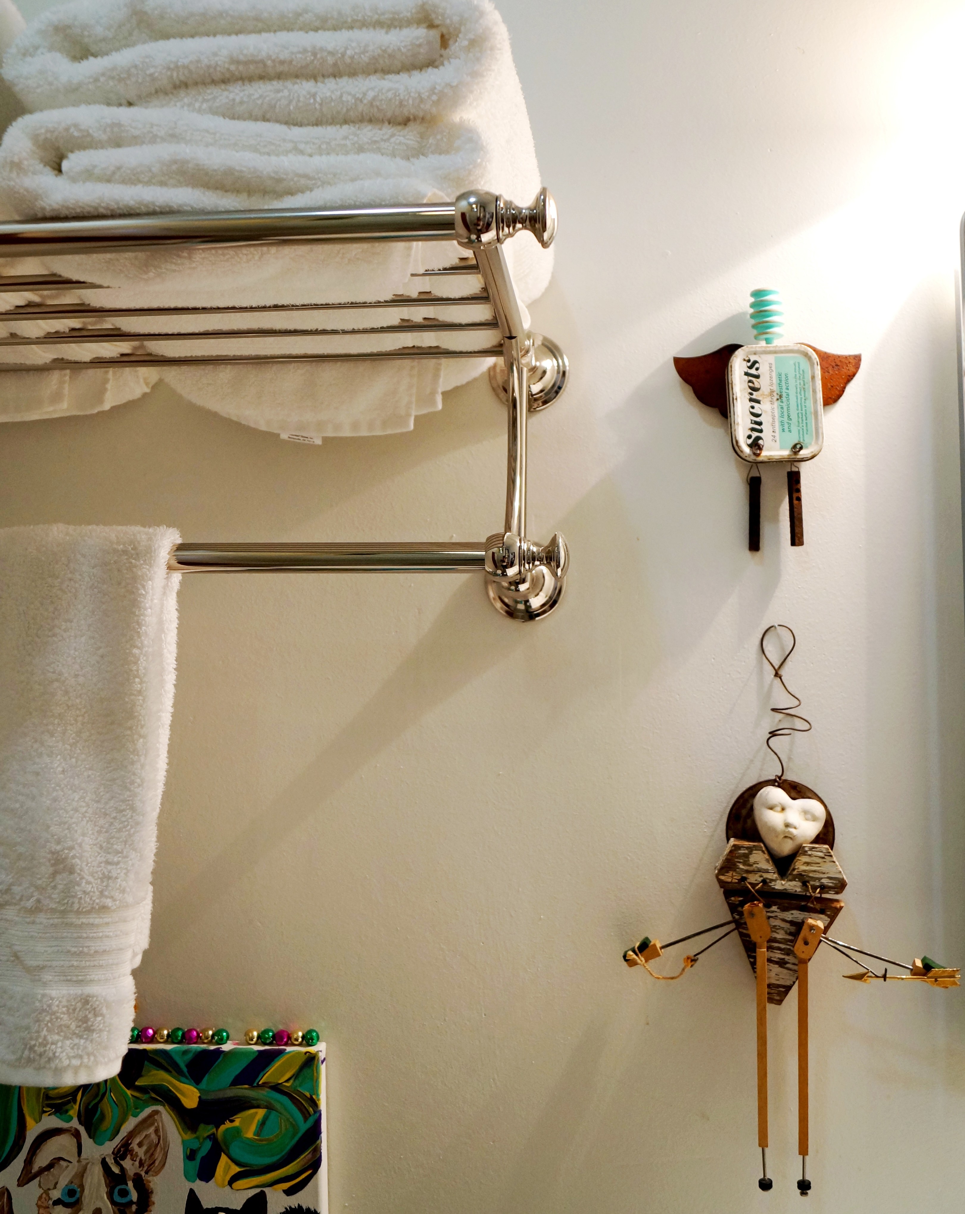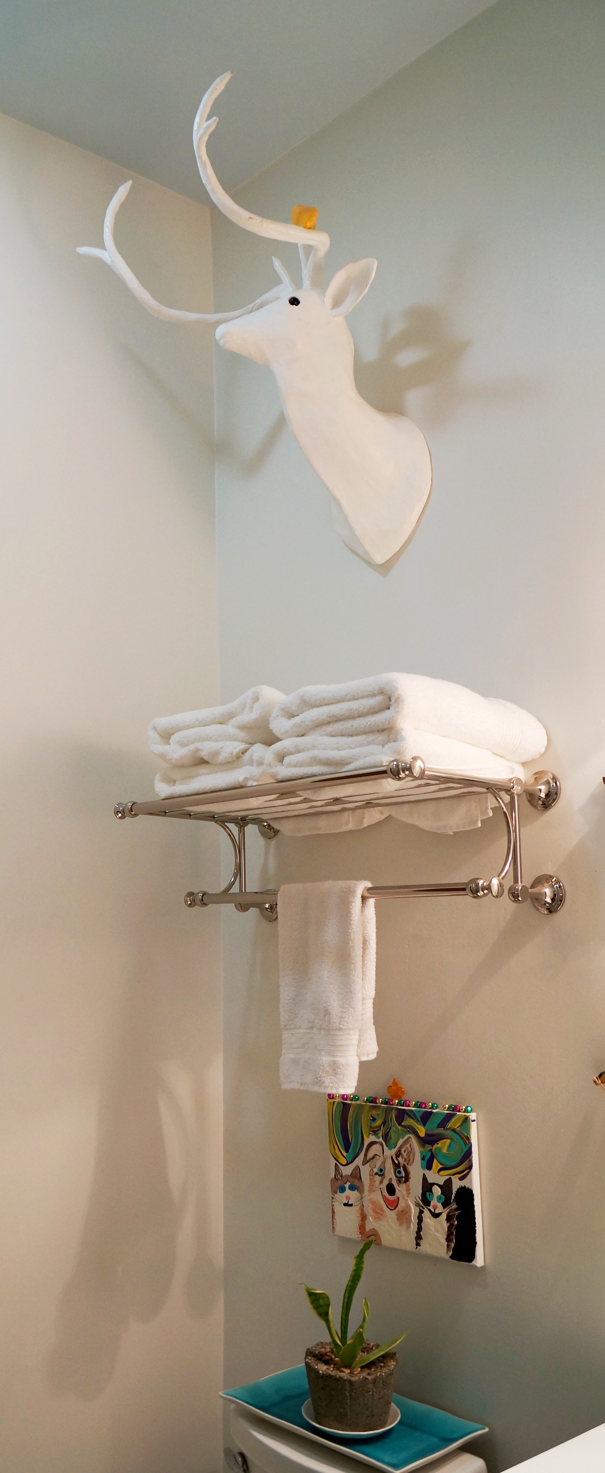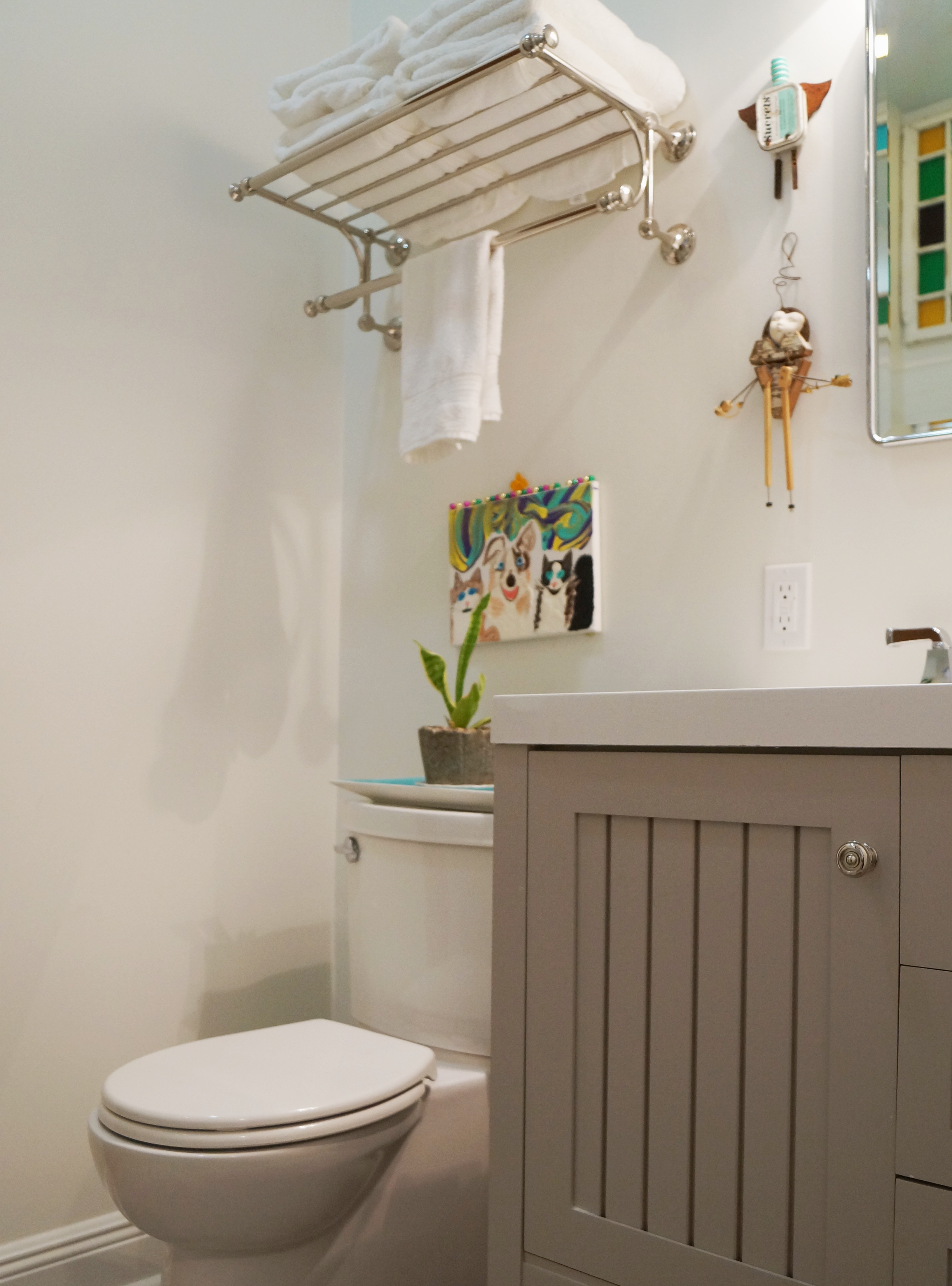 Top it off with lots of vintage style fixtures and the bathroom is ready for guests. Have a look!