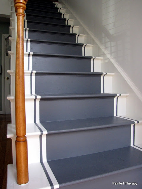 Want bigger impact? Don’t feel like you have to stop with the railing. The risers and treads look great painted too. You can even paint your own runner.