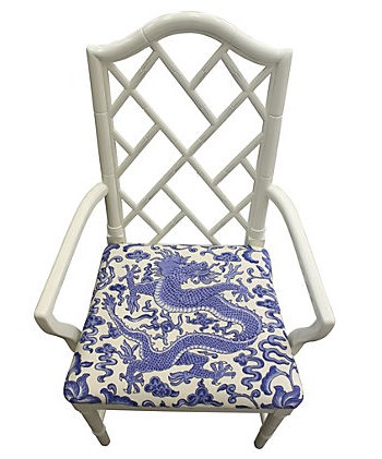 Chinoiserie is a French term, signifying “Chinese-esque” I’ve always called it my “Asian Flare” but now that I know there is a special name for it I feel so much more sophisticated. So what says Chinoiserie more than a Chinese dragon? Not much! Recently I was able to work on a project using some beautiful dragon printed linen from No.9 Thompson’s’ Dynasty Collection and also received another request to do a project in Schumacher’s Chiang Mai Dragon, but both of these fabrics run about $150 a yard. Ouch! So I started looking around for some reasonably priced dragon fabric. I looked and looked, it is just not out there. Hint, Hint, I think I see a niche in the fabric world that needs to be filled. So what are we budget minded designers to do until then? Don’t be discouraged we still have options. We can still use these beautiful fabrics, just in a smaller way. Hunt for discounted samples, remnants, or even someones scraps as long as it is large enough to make a pillow, cover a lampshade,or even upholster a seat cushion, your in business. These fabric.s are so bold even a small piece can make a big impact. So no matter what your budget don’t shy away from a little Chinoiserie!