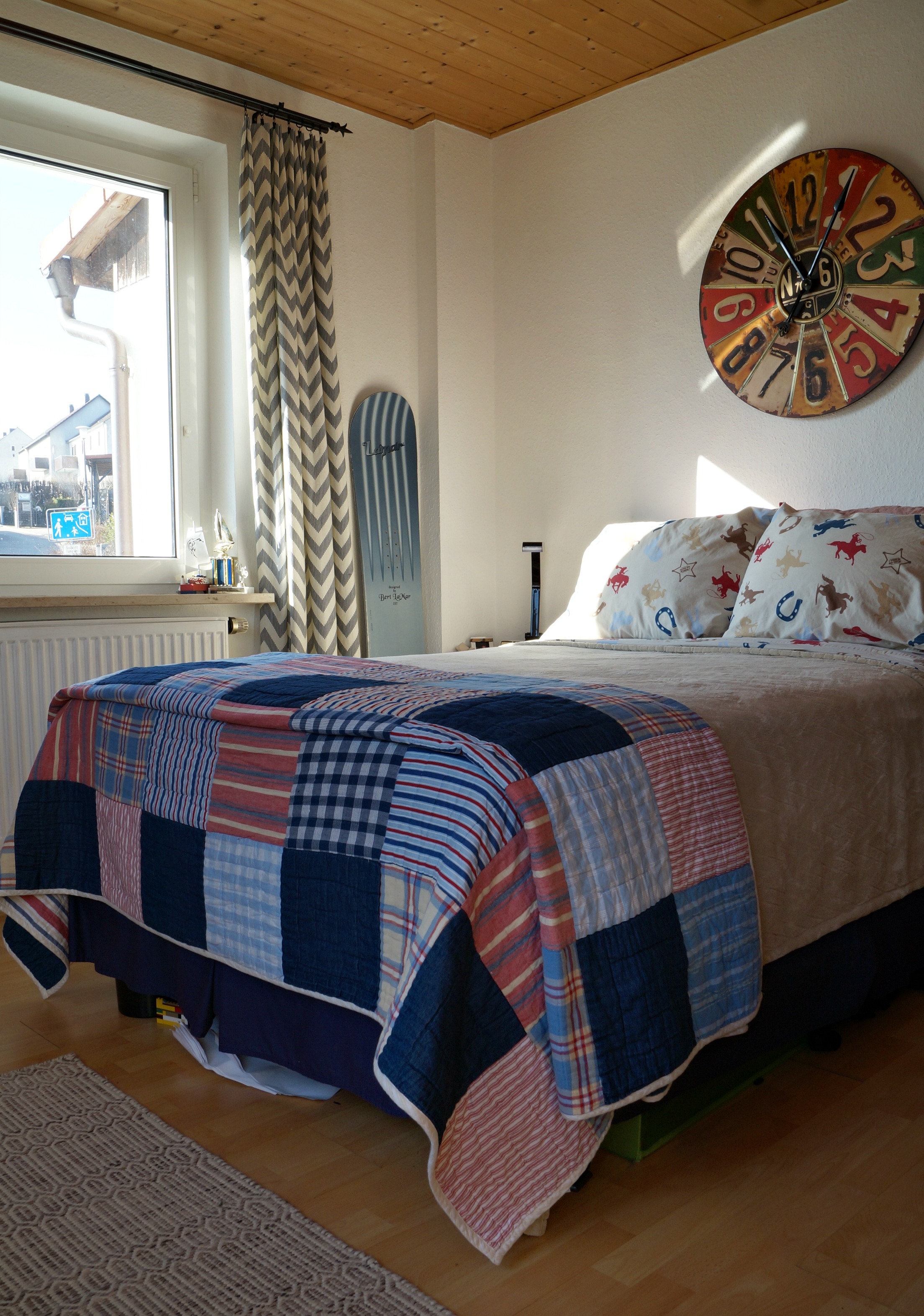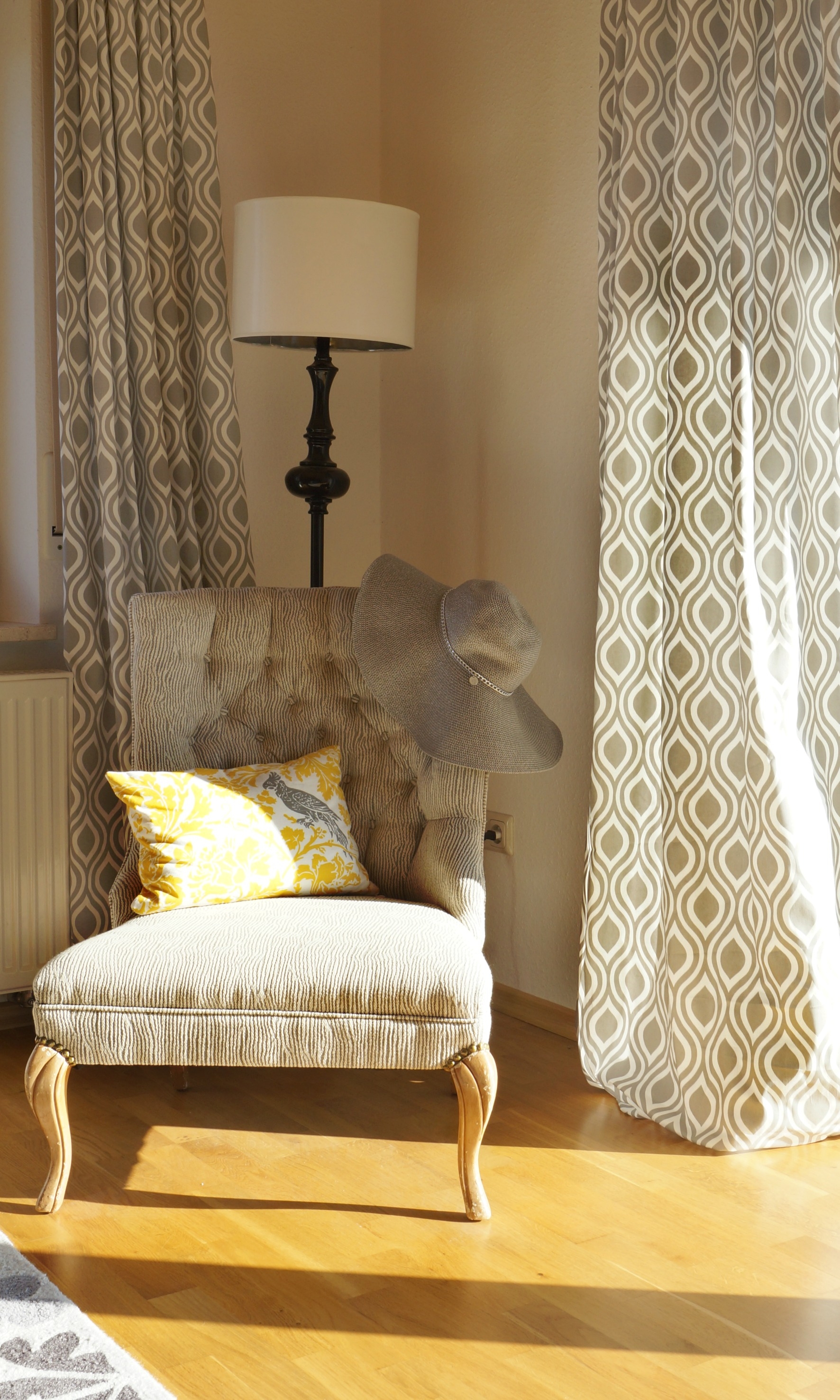 Robin uses bold patterned curtains in almost every room to bring impact to the space. “I’ve definitely improved my sewing skills over the years so I find the fabric I like and make my own pillows and curtains. I love patterns so this is the most affordable way to get the look I want without a high price tag.”Robin∼