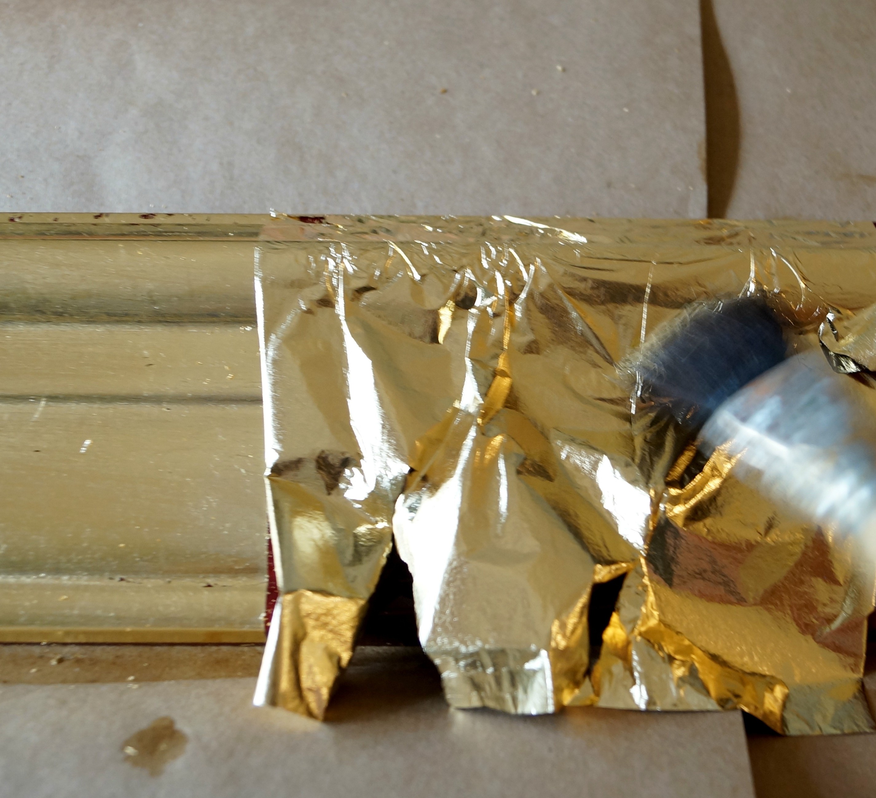 This is not a full gold leafing tutorial but I will give you an idea of how it’s done.