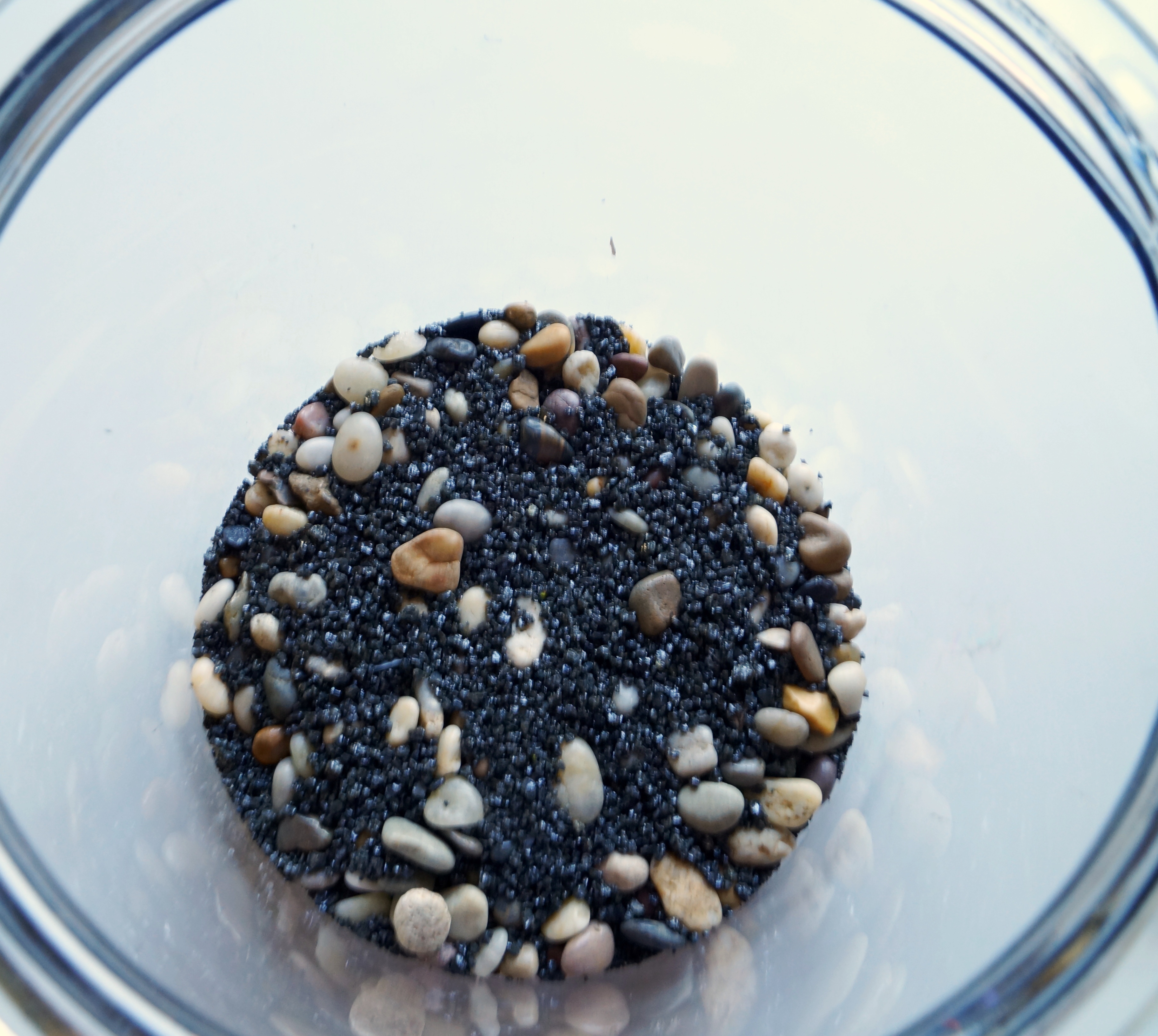 – Start with about a 1-1/2″ layer of gravel. You can get creative here if you like, aquarium gravel, marbles, colorful rocks you choose as long as it’s nonporous.