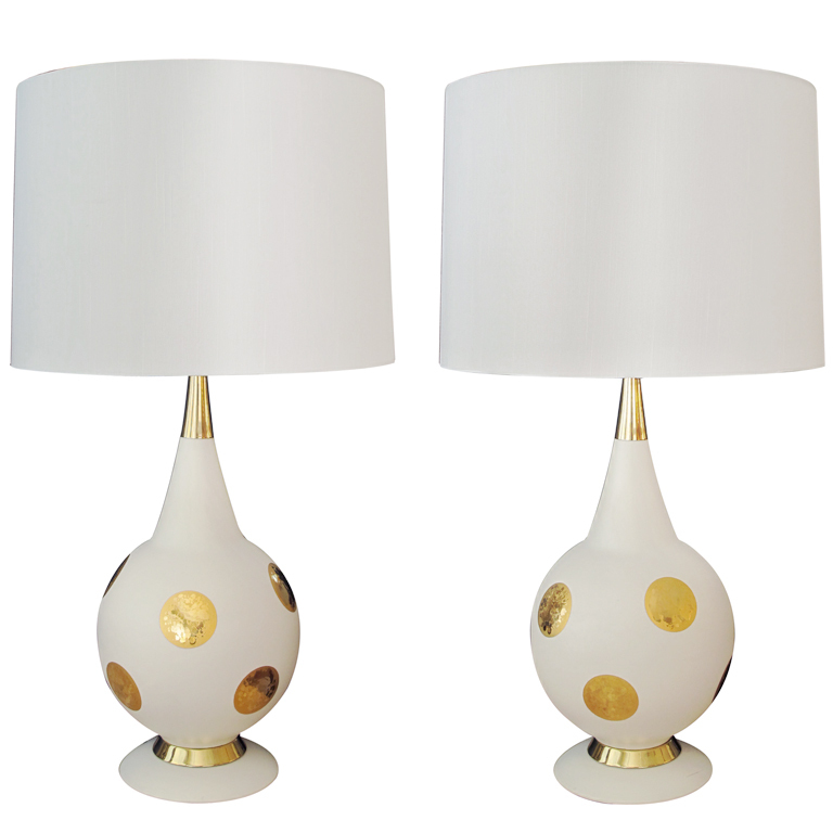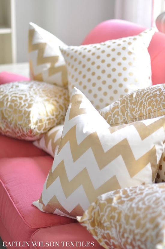 American Ivory Ceramic Lamps with Gilt Circles and Caitlin Wilson Textile pillows make a great pair!