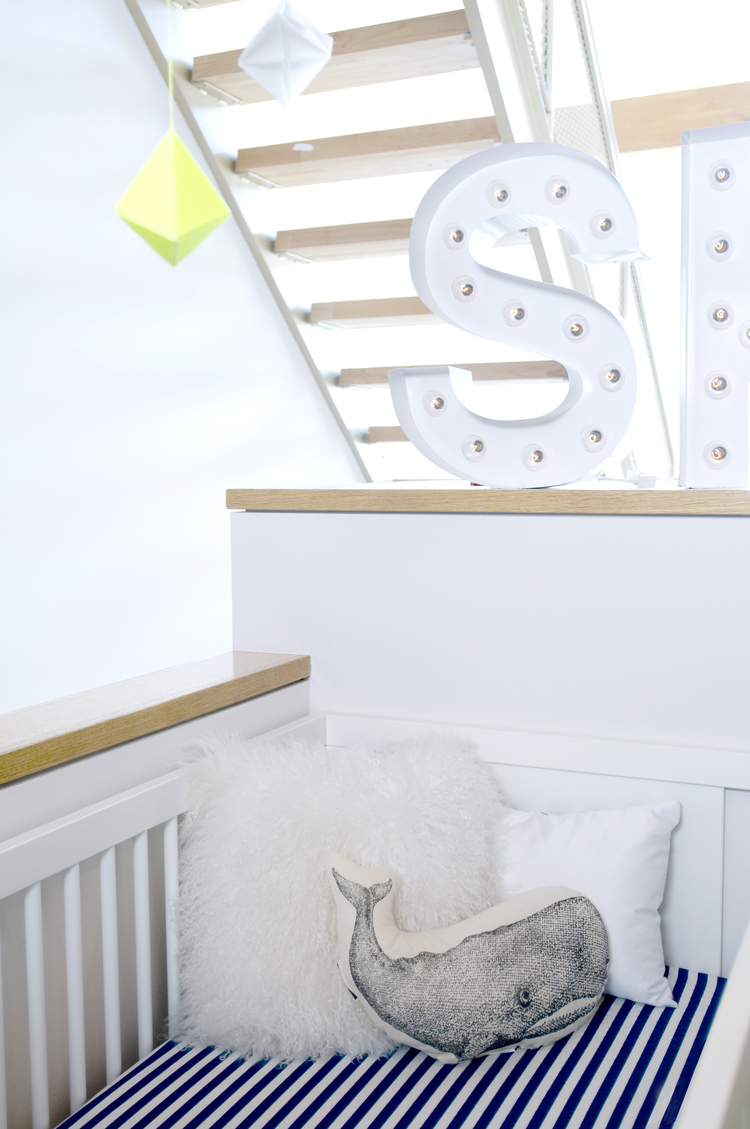 What great texture and warmth the lambs wool adds to this otherwise sleek nursery designed by Studio Revolution