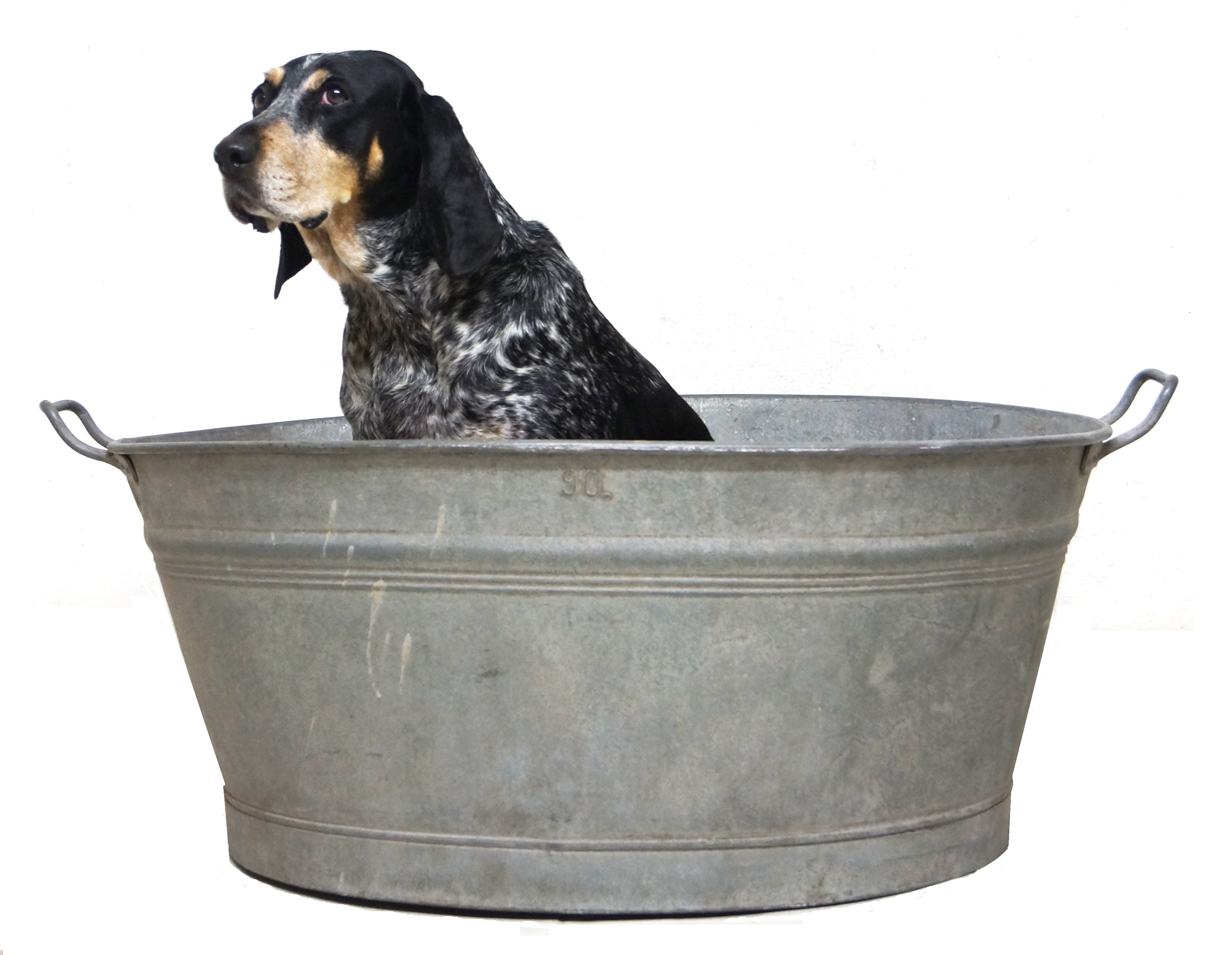 - 95 Liter Wash Tub 25€ ($35)- The dog (Stella) didn’t come with it but to get a better idea of just how big a washtub this is I had my 70lb Coonhound model it for you.