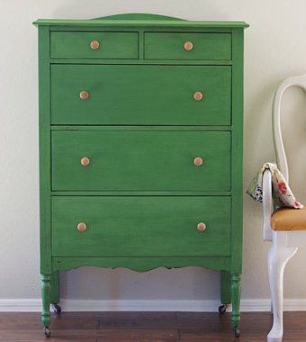 - Painted Dresser $590 – Hand painted and lightly distressed antique high boy with natural wood knobs and darling casters.