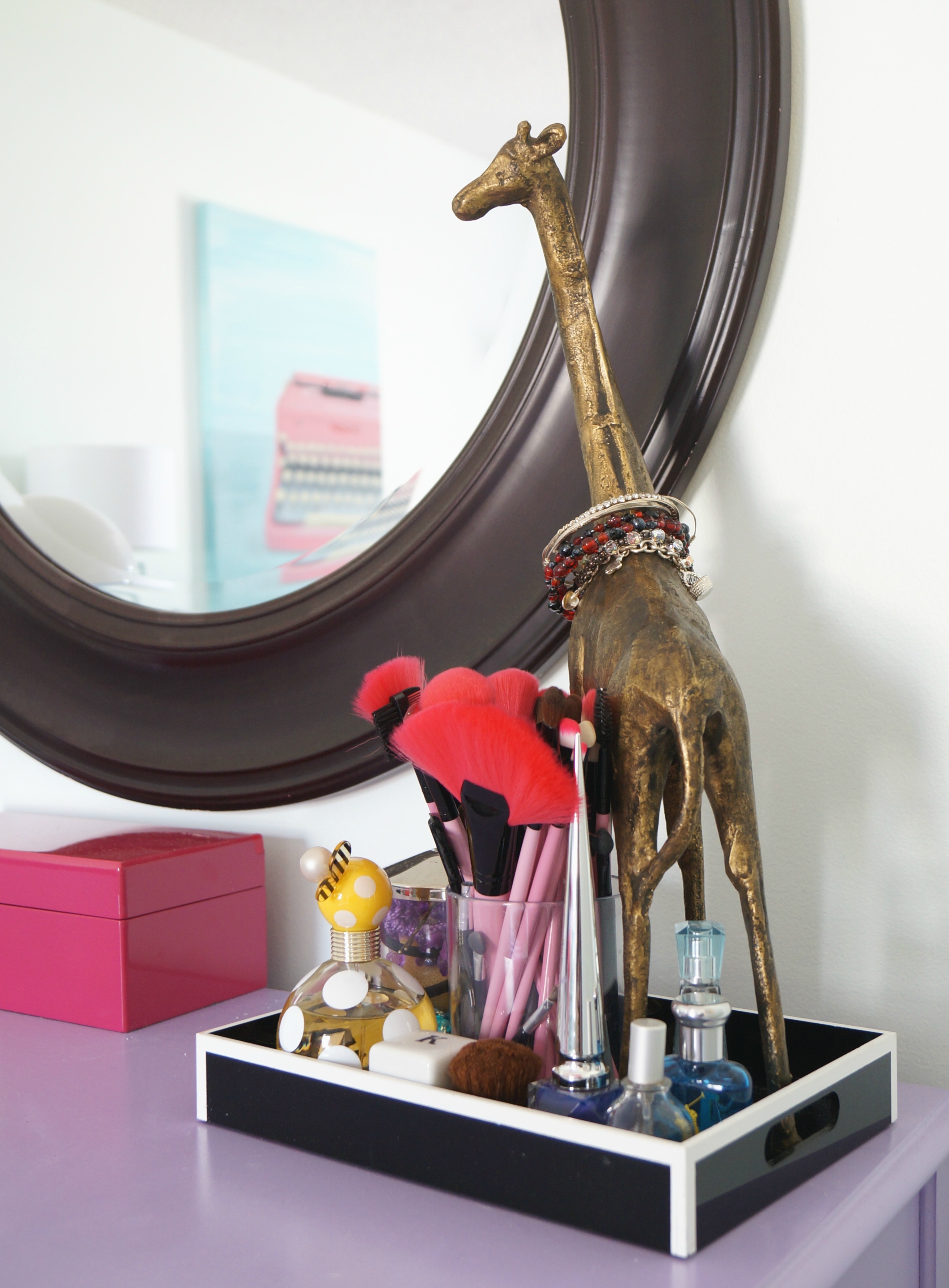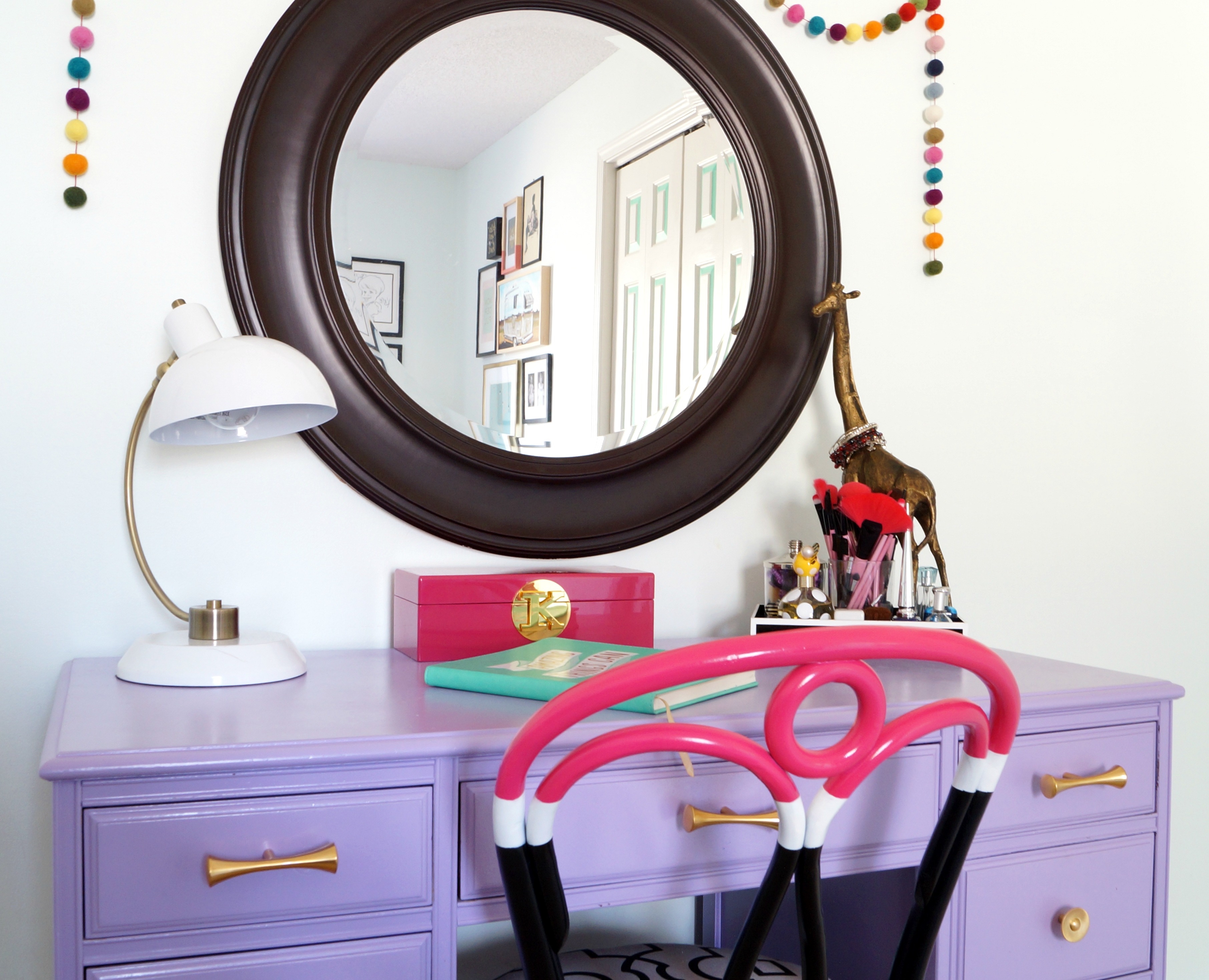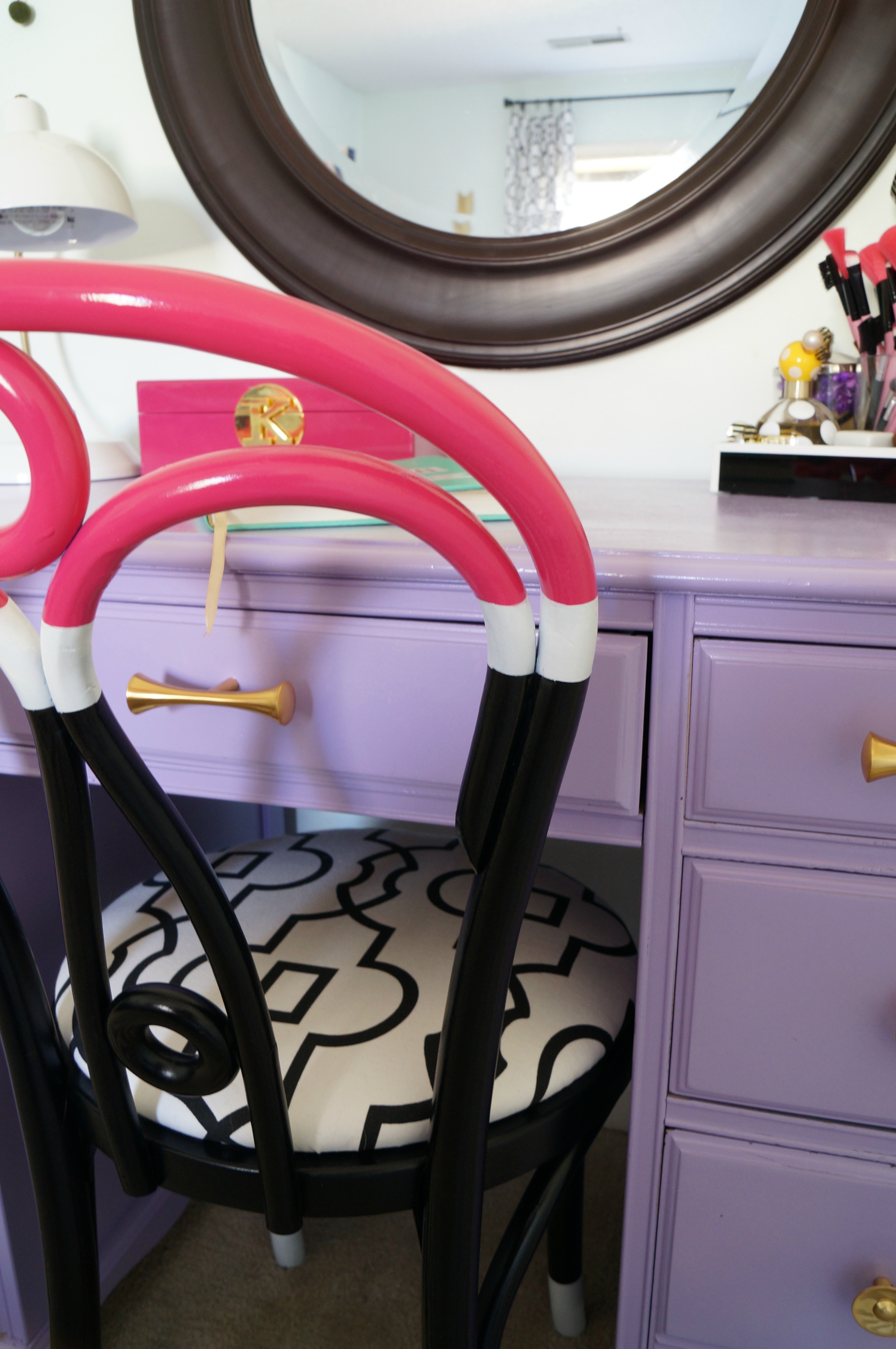 And of course the DIY’s you saw here, the photo frame, the desk/vanity and the color blocked chair.