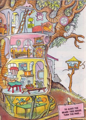 The Berenstain Bears by Stan and Jan Berenstain lived in a tree house and were able to fit some pretty extensive interiors in that one trunk!