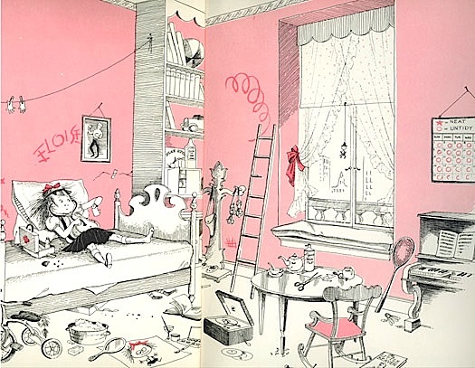 Eloise by Kay Thompson and illustrated by Hilary Knight had some pretty fancy digs at the Plaza Hotel in N.Y.C. plus she never seamed to have to clean her room…