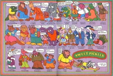 The Sweet Pickles Series by Jacquelyn Reinach, Richard Hefter, and Ruth Perle were one my favorites growing up not for what was in the book itself but for what was on the inside cover. Each cover contained a list of character and an aerial map of the neighborhood and each character’s home. I remember spending afternoons with my sisters negotiating who would be what character and driving around the neighborhood with our fingers to each others house. Houses with pools were definitely a premium!
