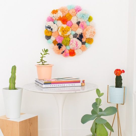 3. Sugar and Cloth created this colorful pom pom wall hanging that has me wanting to pull out my yarn stash and start making pom poms.