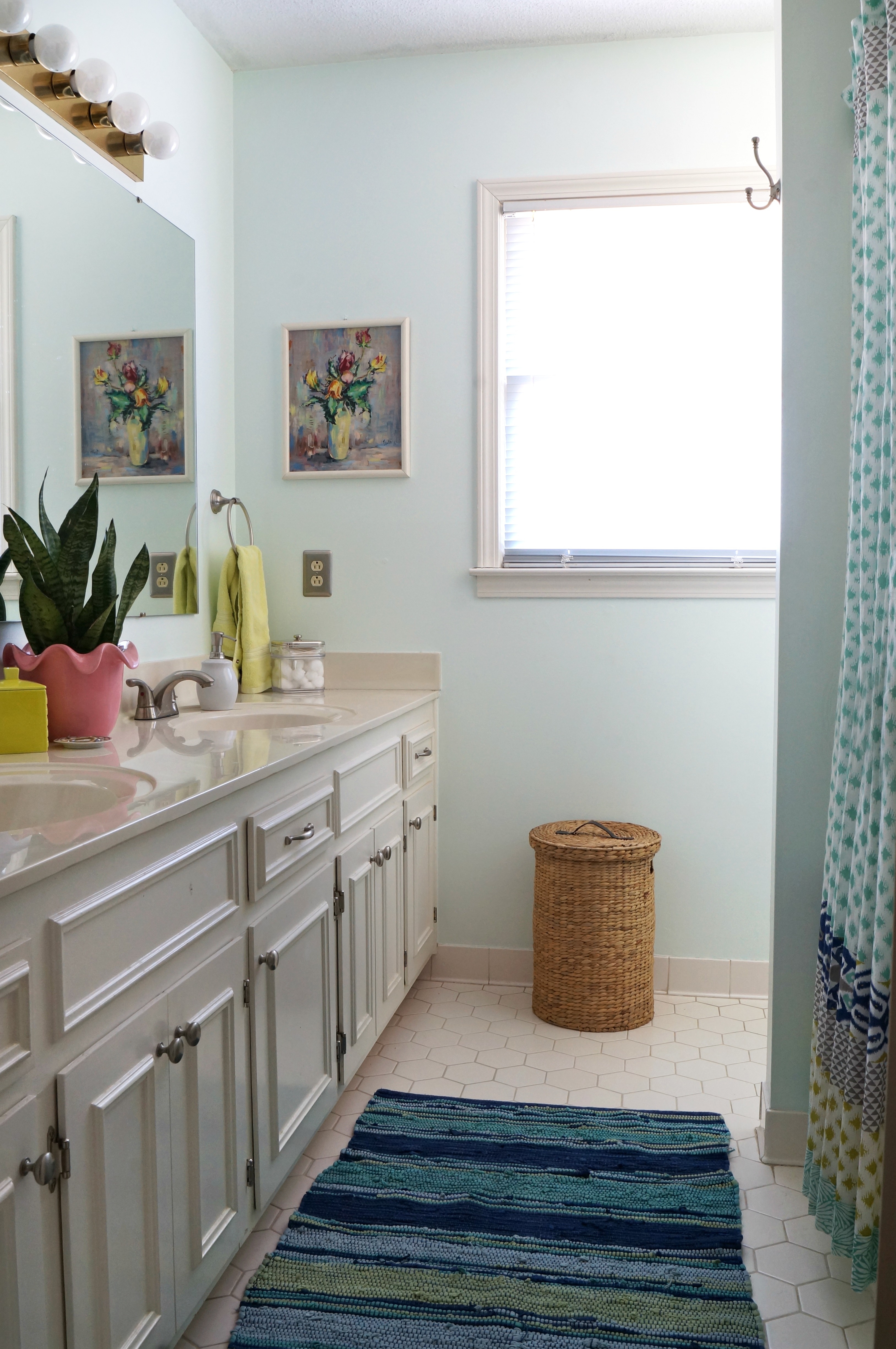 Because everyone loves a “before and after,” and so you see how far we’ve come, here is what the bathroom looked like when we moved in. FYI I didn’t do all this work this week, I just hadn’t shared the “before and after” and since the bathrooms are all sparkly clean what better time than now?