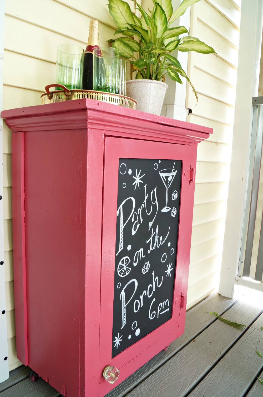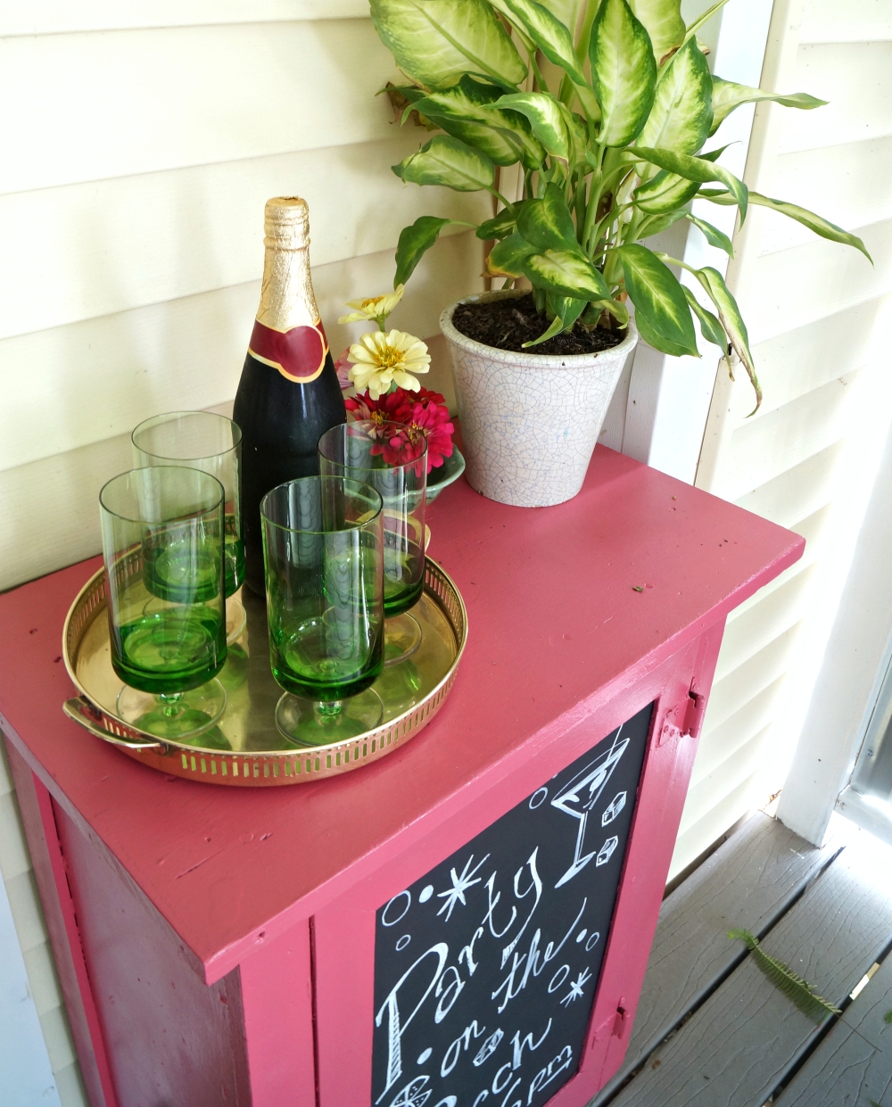 and a fresh coat of Krylon Mambo Pink on the storage cabinet