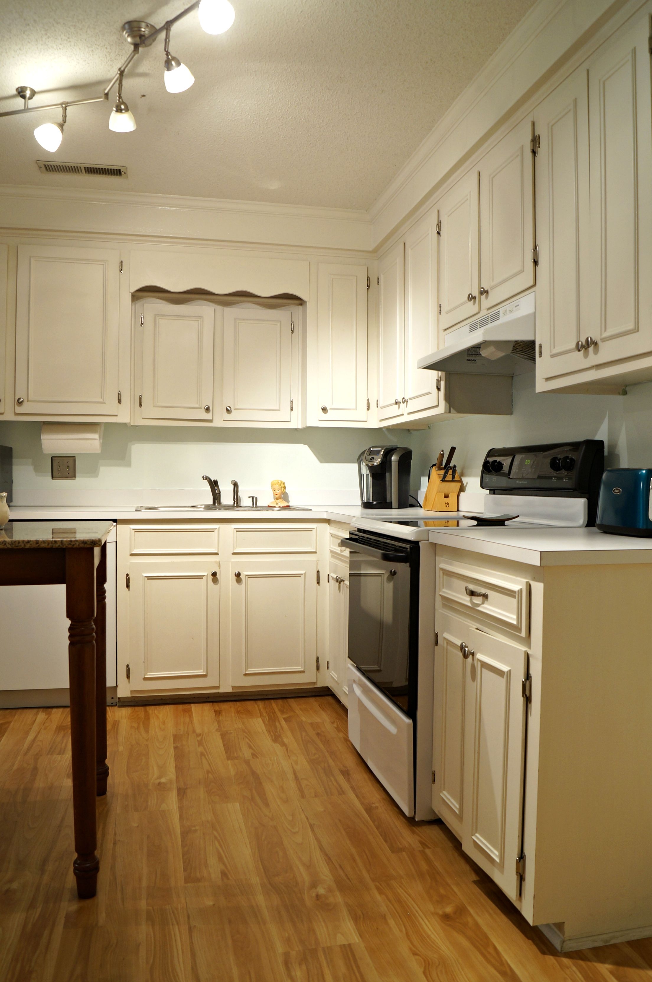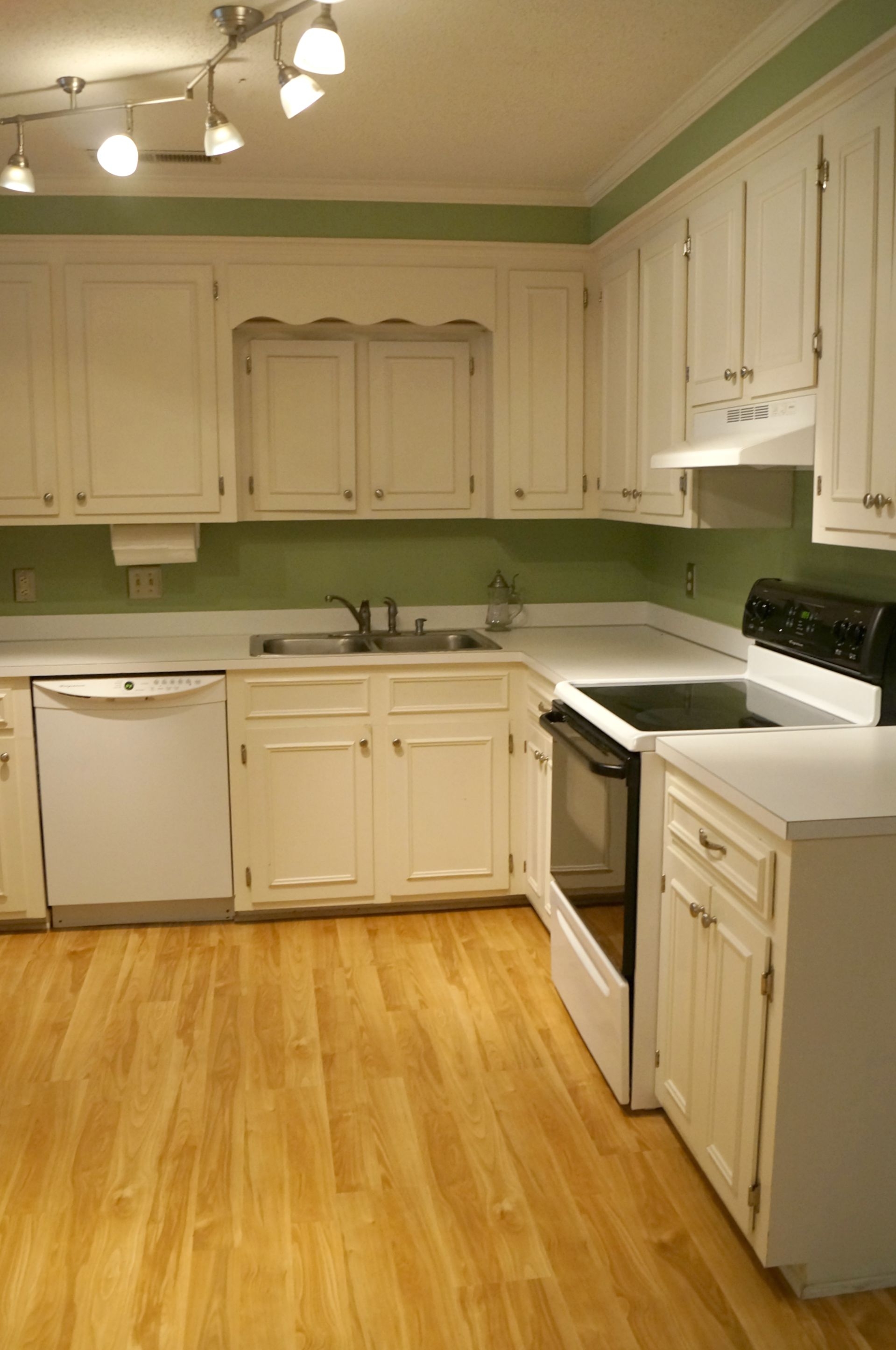 The kitchen is always my first priority since eating out of a fast food bag gets pretty old after a while and FYI makes you fat. Ten pounds later it is time to paint the kitchen and get some healthy food on the table! The cabinets and trim (in the entire house) are creamy white, not the bright white I would normally choose but at least something I can live with. The trim color is called Quail Egg by Valspar. All the paints I am using are Valspar since I am lucky enough to have a Lowe’s Home Improvement store right up the road. (I can’t tell you how much I missed Lowe’s while I was in Germany.)