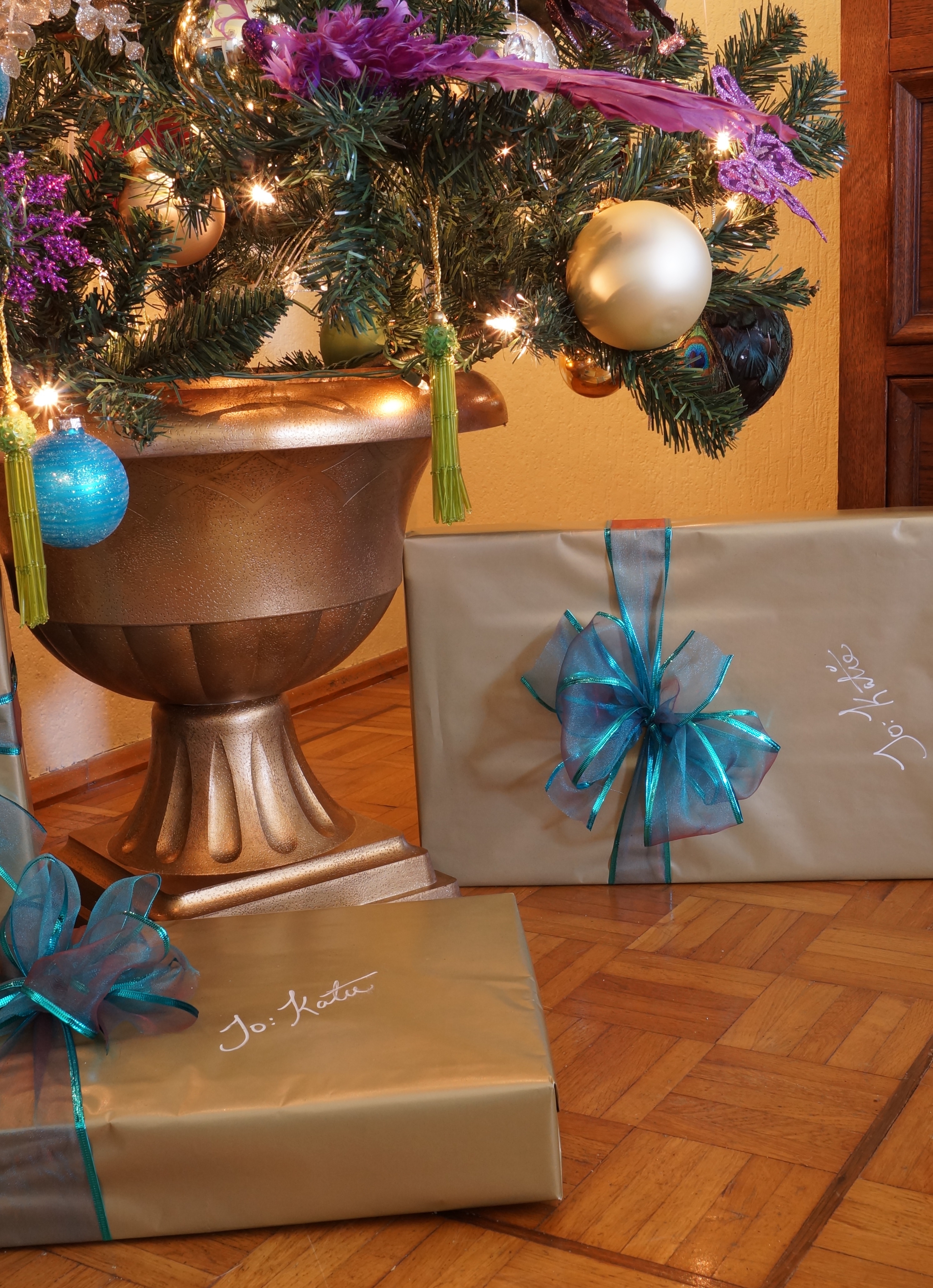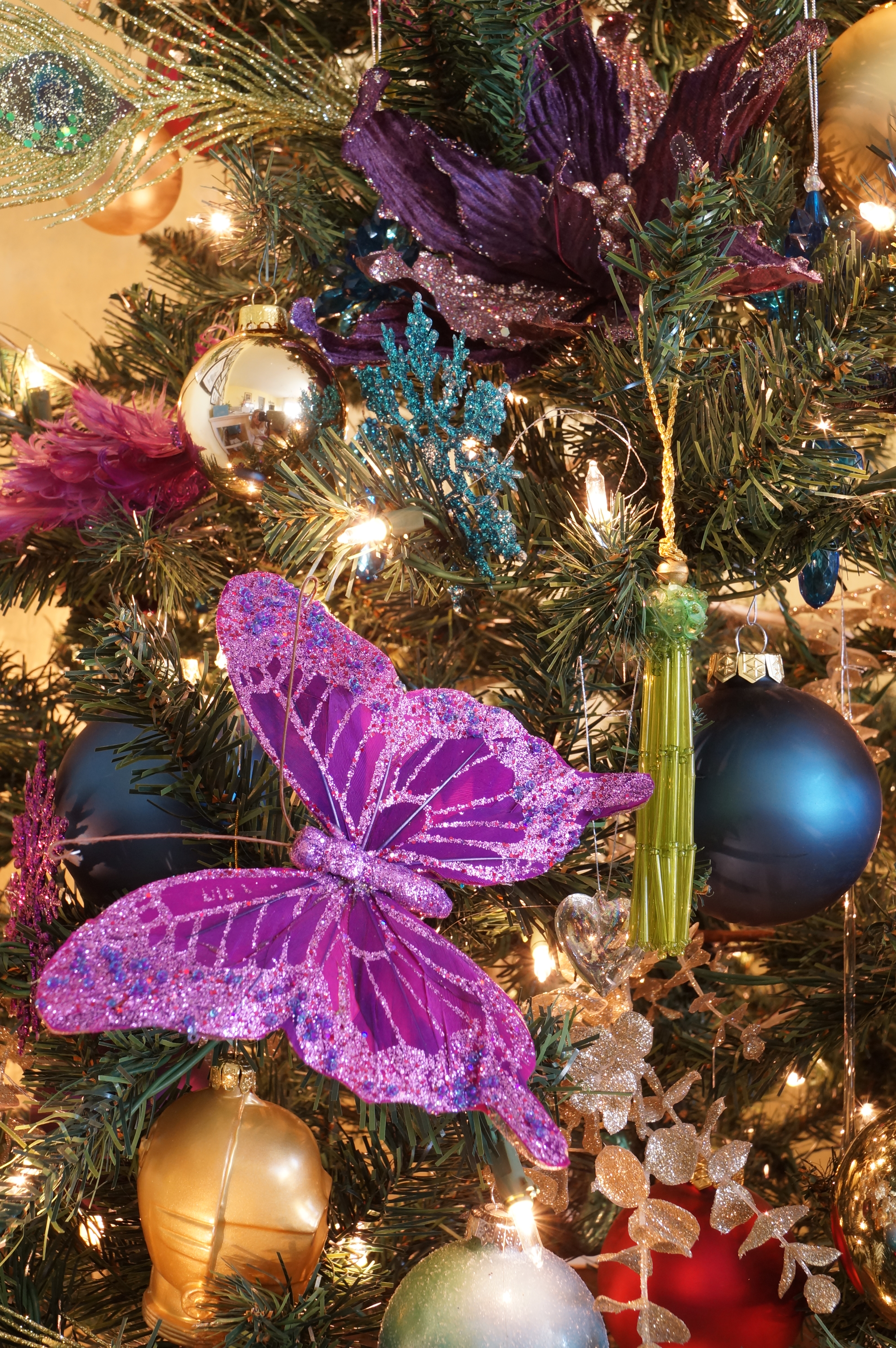 Last year you were introduced to Mr. Peacock my amazing peacock tree topper who has been with me for several years now. This year he’s back up but with a few added accessories in gold. I used to love silver but these last few years I have grown to love the warmth of gold and with the natural gold in peacock feathers is just makes sense to add a bit more to the tree. I even “planted” my tree on a golden urn to add some height (I’ll show you how I did this a little later this week.)