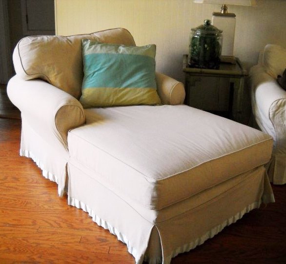 My Mom’s style is totally shabby chic and with that comes lots and lots of white. Well white fabrics in the home need to washable especially when you have a large family. For Mom the solution has always been slip covers on all the furniture, no not your grandma’s plastic ones, but custom-made fitted slip covers. Her’s are loose-fitting linen slip covers in all white (that can be washed and bleached.)This is where I got my start making slip covers, sewing for my family and friends. But soon I became a convert and started making lots of slip covers for myself. My style of slip cover is a little different from my Mom’s. I love color and slip covers make it so easy to add bold a bold punch of color that I can change out whenever I want. I also like my slip covers to “FIT,” shabby chic slip covers tend to be a little looser (usually because they are made out of linen which tends to stretch.) I personally like my slip covers to look like upholstery.