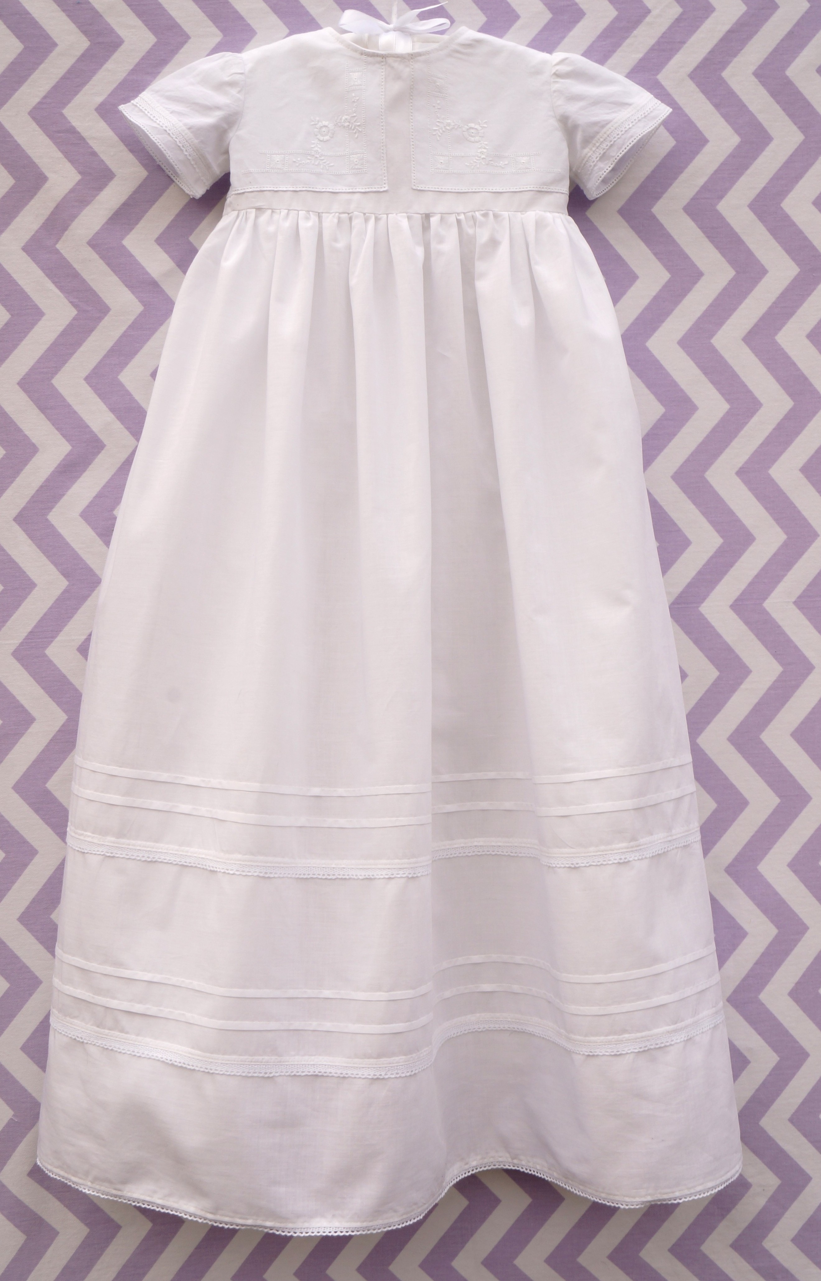 I normally write about home decor but today I wanted to share a project I have been working on that is a little different. You may remember the budget nursery design I shared recently for baby Elizabeth. Well when it came time for her baptism and her mom asked for my help making her baptismal gown I was happy to help. It has been a while since I have done any heirloom sewing since my own daughter is about to turn fourteen but I have always loved making baby things so I had a few ideas.