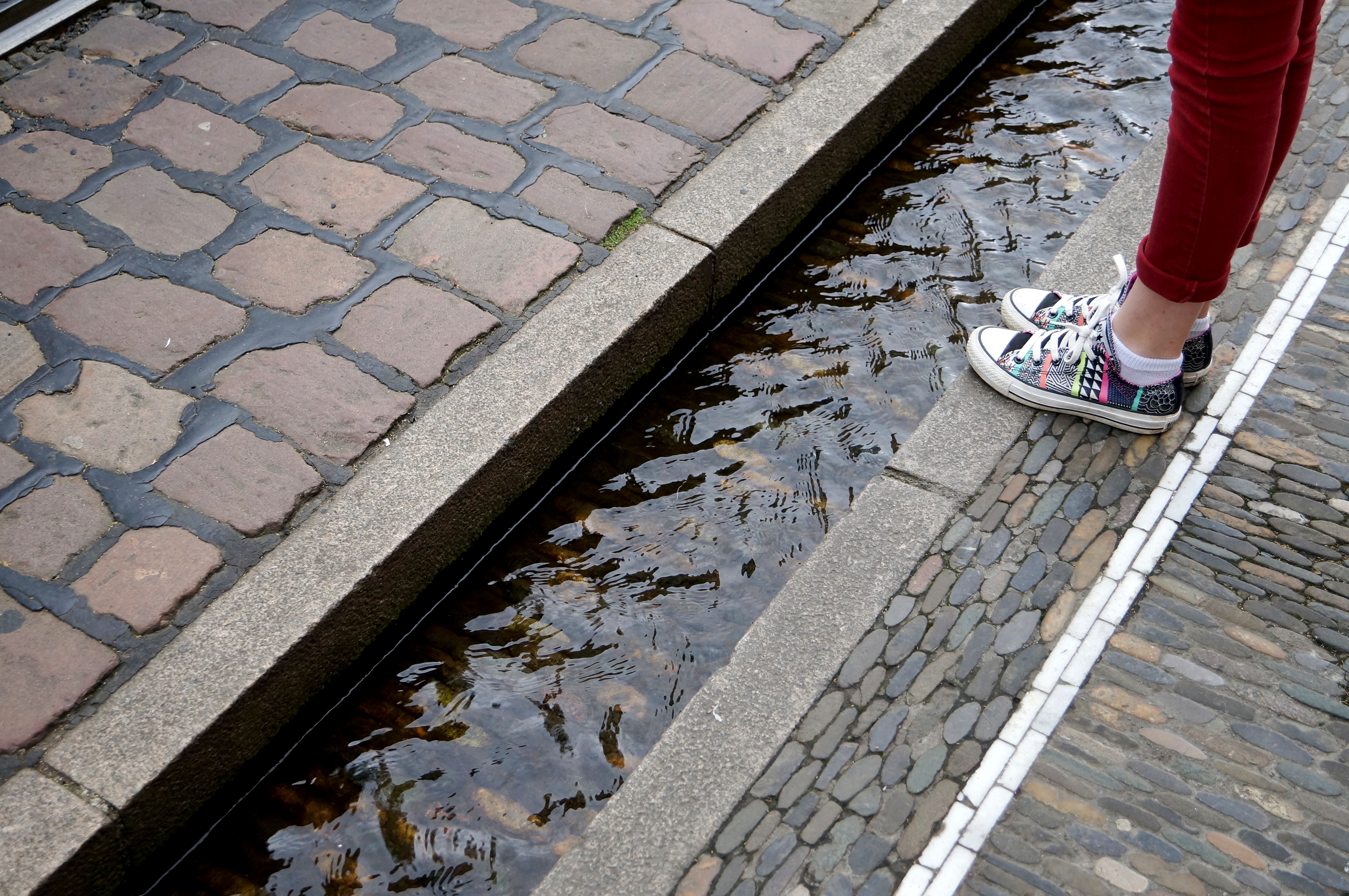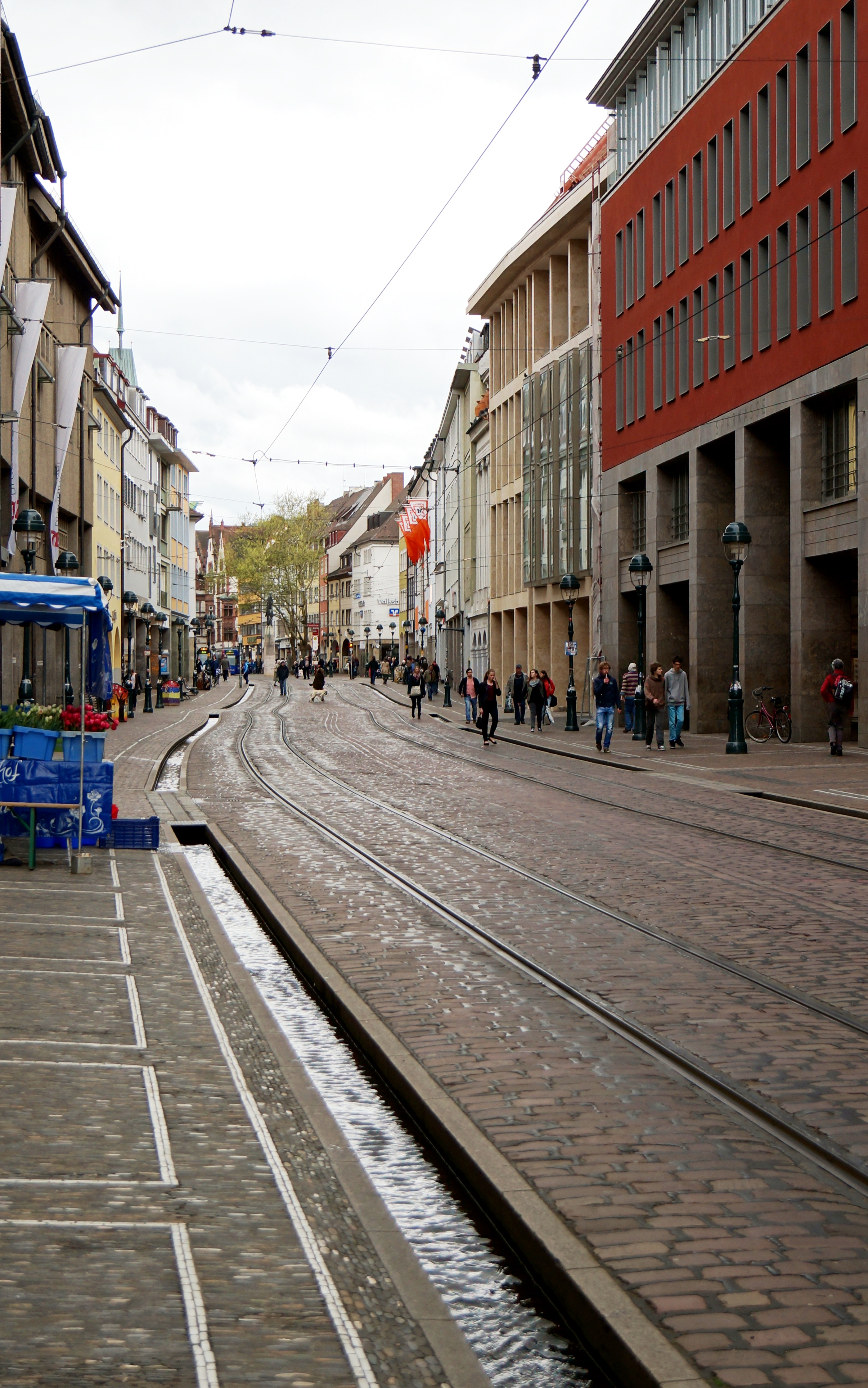 “The city has an unusual system of gutters (called Freiburg Bächle) that run throughout its centre. These Bächle, once used to provide water to fight fires and feed livestock, are constantly flowing with water diverted from the Dreisam. They were never intended to be used for sewage, and even in the Middle Ages such use could lead to harsh penalties. During the summer, the running water provides natural cooling of the air, and offers a pleasant gurgling sound. It is said that if one accidentally falls or steps into a Bächle, they will marry a Freiburger, or ‘Bobbele'” Wikipedia.org