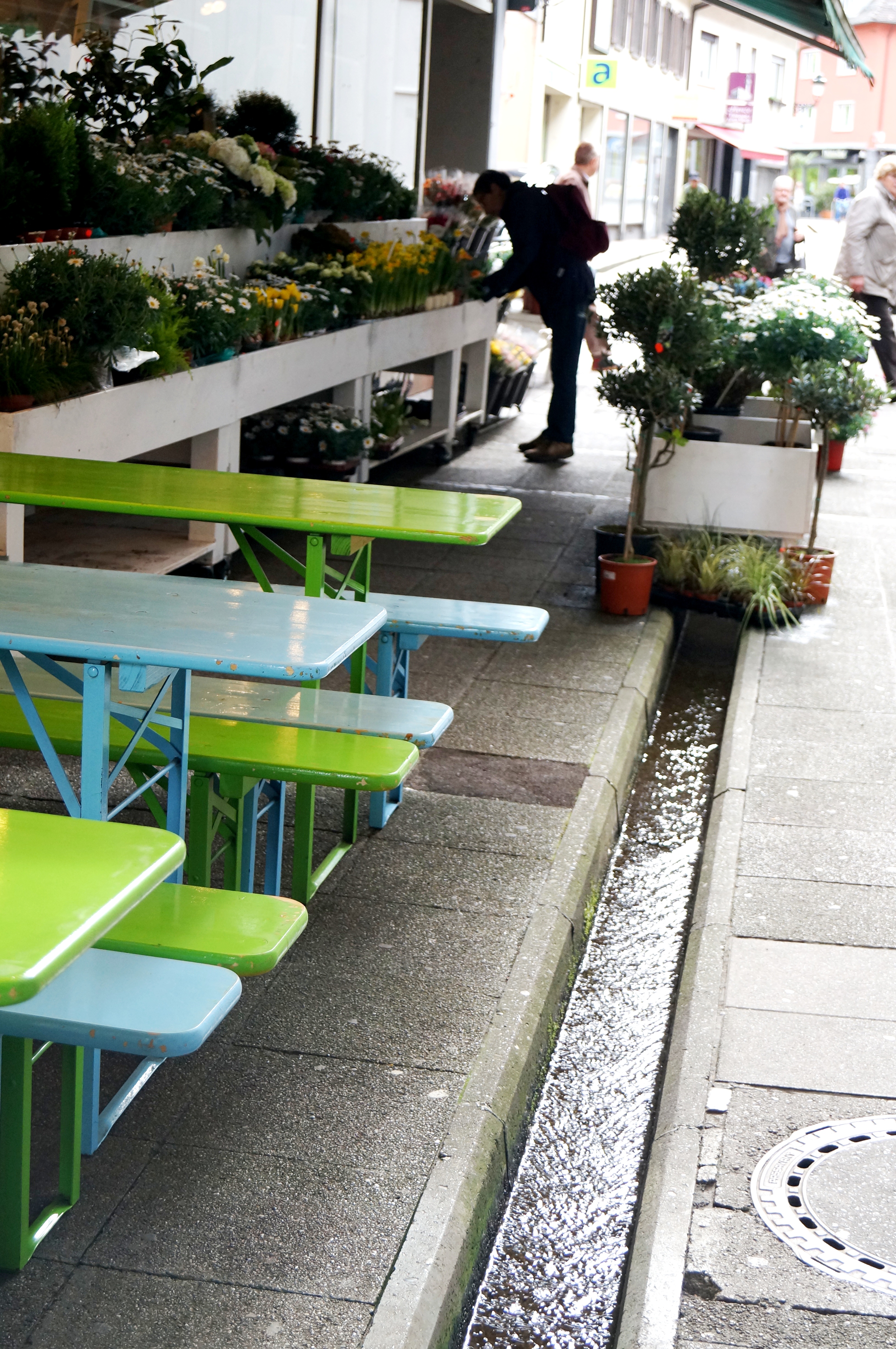 I guess my son will be marring a Freiburger since he spent most of his time engrossed in these little gutters building dams and floating leaves and sticks along the current. Quite the attraction…One store even had theirs filled with a tether of rubber duckies.