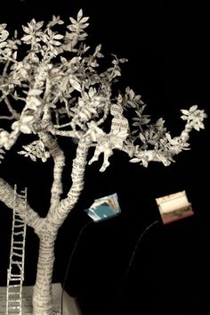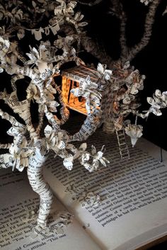 I have always loved paper cut artworks so when I ran across Su Blackwell‘s work I could not have been more thrilled. When I tell you that this London based artist’s paper cuts jump right from the pages of a story book, I mean it quite literally. Su Blackwell uses the pages of books to create 3 dimensional paper cut sculptures that are beautiful, delicate, intricate fairy tales. From the pages of an open book her artwork springs to life.