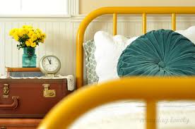 As most of you may have notice by now, I love color! Lately I have been seeing the most beautiful painted beds, particularly in the Jenny Lind style with turned spindles. Some of the big retailers are now selling them in a full size version for almost $700. I saw these great photos and hunted around until I found this guy at a flea market for $40.(Now if you don’t want to hunt so hard you can probably find one at an antique mall for $150 to $250, still a big savings from $700.) You can also find metal versions of these beds that are not as detailed but are usually pretty inexpensive and very sturdy.
