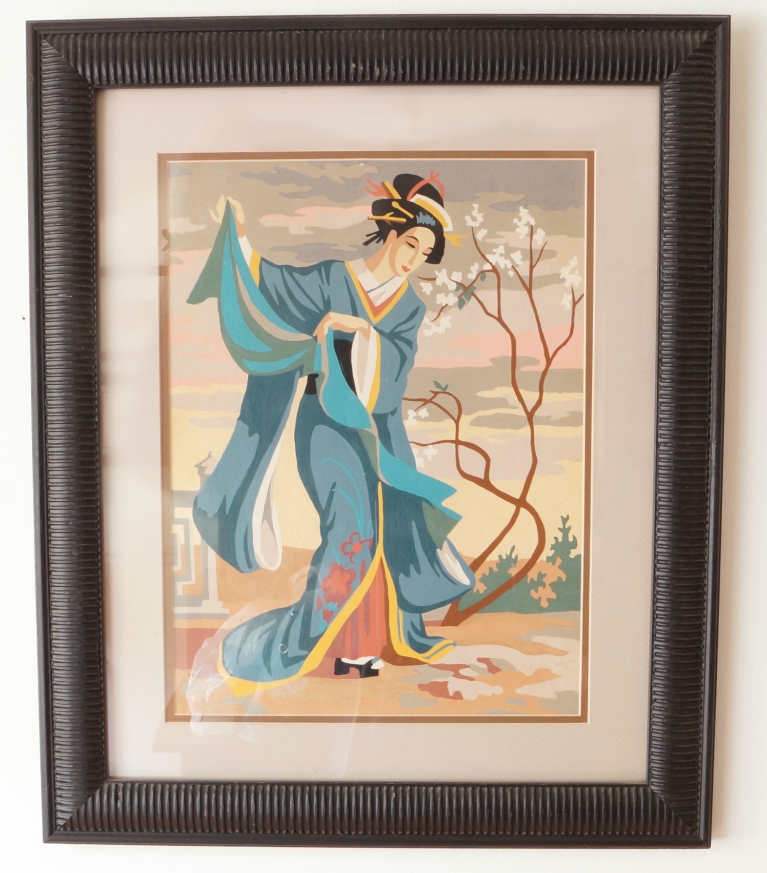 I love the colors in these particular paint by numbers because they have a real 50’s flare about them. Here is the rest of my Asian collection I have thrifted over the years. Now you know why I was so excited to find this one.