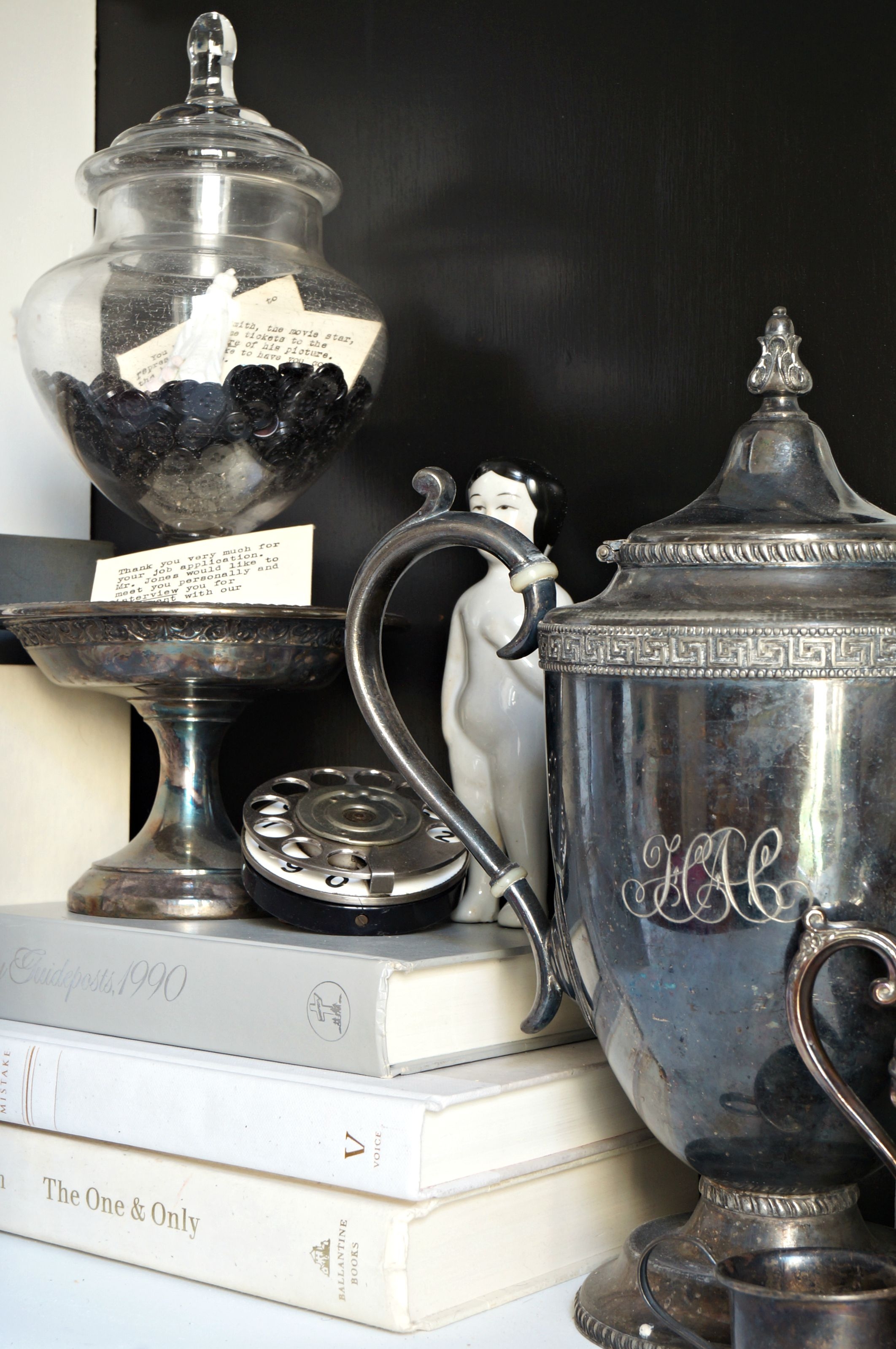 Fortunate for me Mom collects lots of odd bits and object that make shelf styling easy, have a close look at her collection.