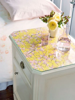 Covering smaller items like lampshades and table tops can bring in color and pattern without a lot of cost.