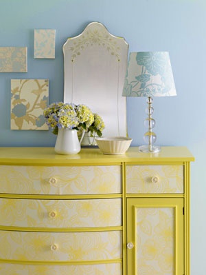 You can use wallpaper on furniture and even as furniture. Photos via BHG