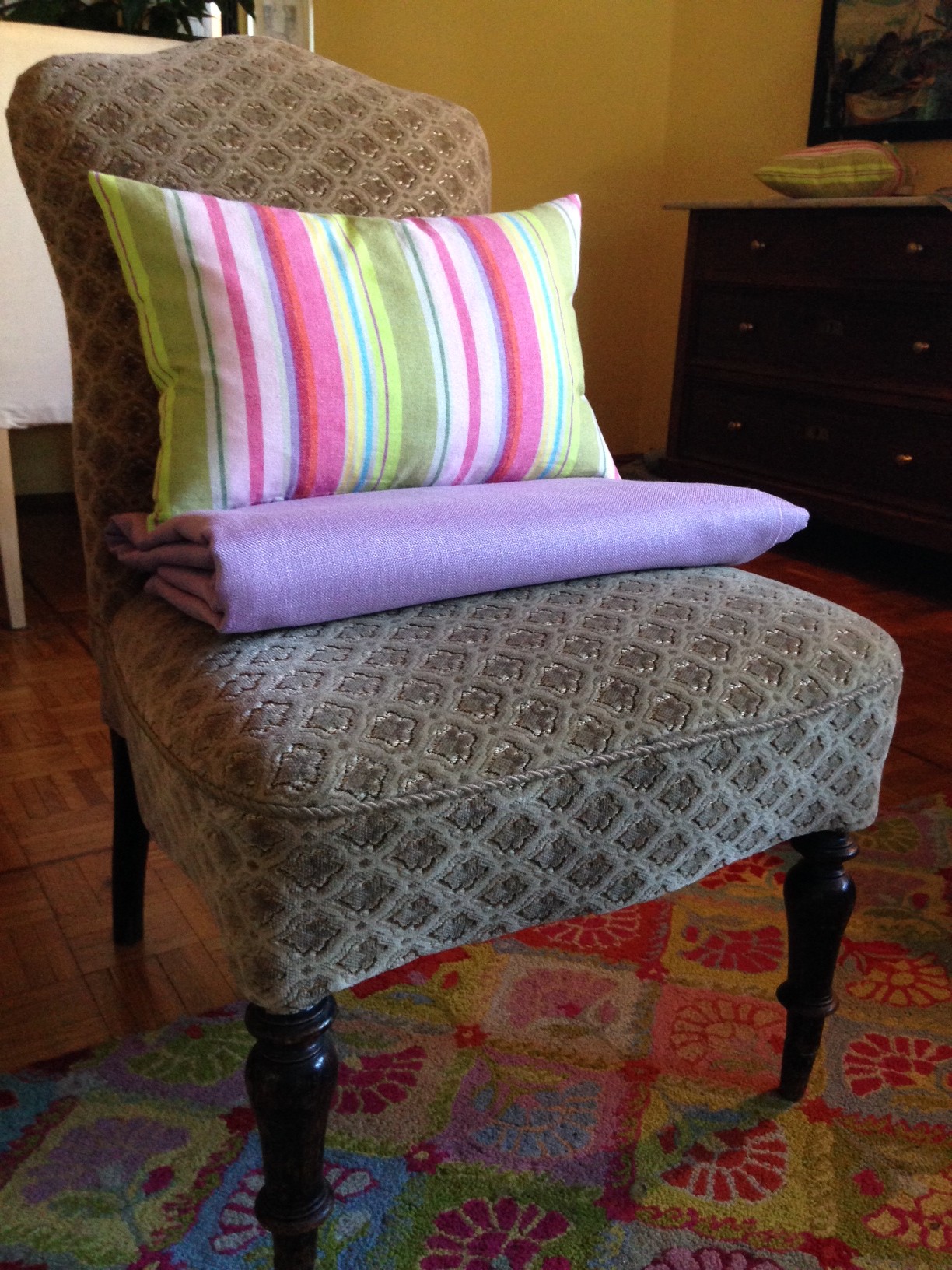 8. Make slip covers for parson chairs in living room – The chairs I mentioned were the chairs on the left but since this post I purchased two antiques slipper chairs that I want to use in their place. They still need to be either upholstered or slip covered but the good news is I have already found fabric for them. I would say this task will be on the list of complete very soon!